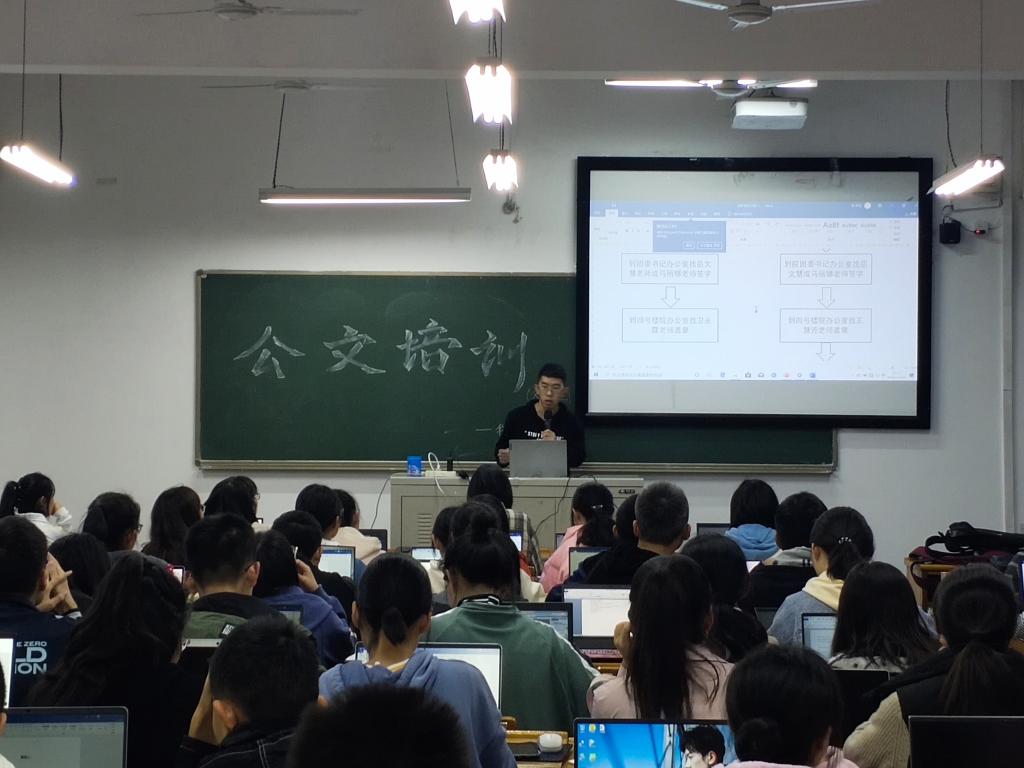 2019年11月10日晚7:00,由公司团委员工会办公室、青协和新媒体举办的公文培训活动在07213教室进行。院员工会部分员工干部和全体大一干事参加了此次培训活动。活动由院员工会办公室干事张晓燕主持。