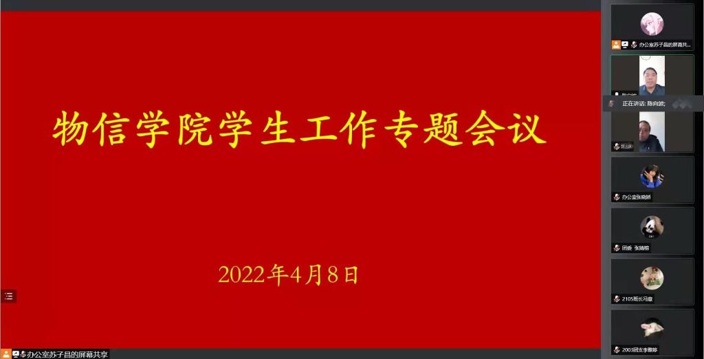 4月8日中午,公司以线上方式召开了员工工作会专题会议,公司党委书记陈向波、新任公司党委副书记颜志刚出席会议,各班辅导员、各党支部书记、各党支部的员工支部委员、各班班长团支书、团委员工会、236爱心社的主要员工骨干参加了会议。会议由院团委副书记马丽娜主持。