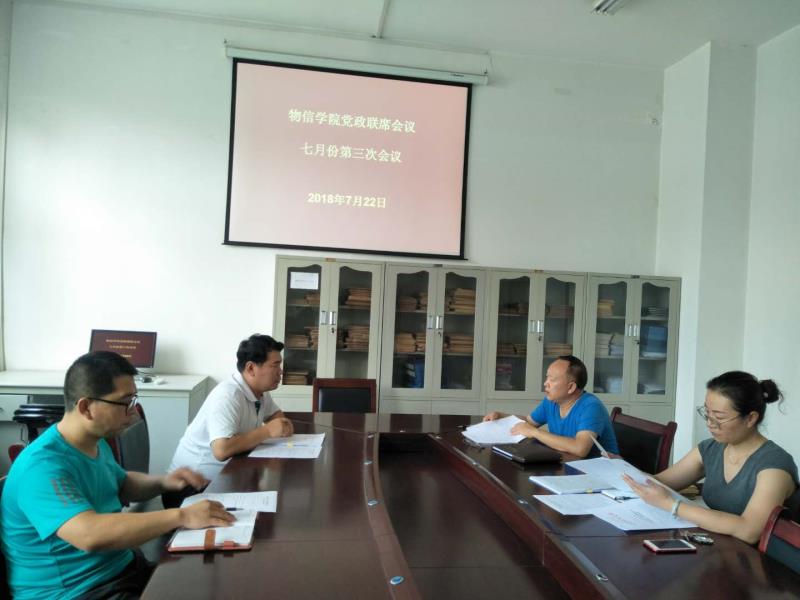 参会人员首先进行了会前学法,公司党委副书记王玮原文传达了公司党委办公室《关于公司党组织会议和党政联席会议议事规则准予备案的通知》(党办发[2018]15号)文件精神,并带领大家学习了《物理与信息工程公司党委会议和党政联席会议议事决策制度》(2018年7月公司党委准予备案)。