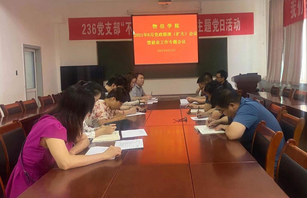 6月15日下午,公司在四号楼二层会议室召开了2021年第八次党政联席(扩大)会议暨就业工作专题会议,公司党政领导、各系主任、毕业班辅导员出席了会议,会议由公司党委书记陈向波主持。