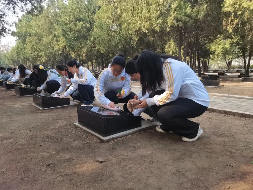 最后,支部党员怀着无比崇敬的心情,仔细擦拭每一座烈士的墓碑,经过大家的共同努力,烈士陵园焕然一新,变得更加庄严和肃穆。