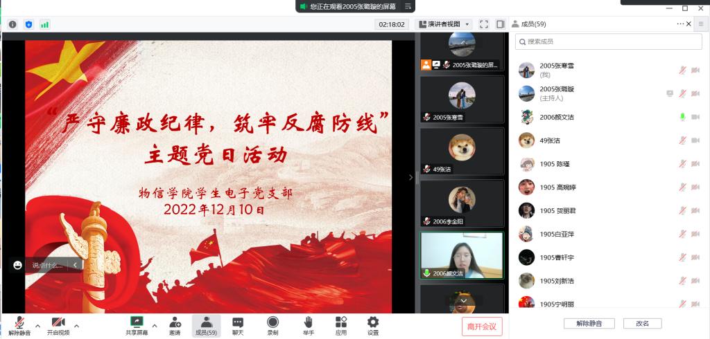 12月10日上午,公司员工电子党支部通过腾讯会议线上开展了“严守廉政纪律,筑牢反腐防线”主题党日活动。本次活动由支部党员张璐璇主持,支部全体党员参加了活动。