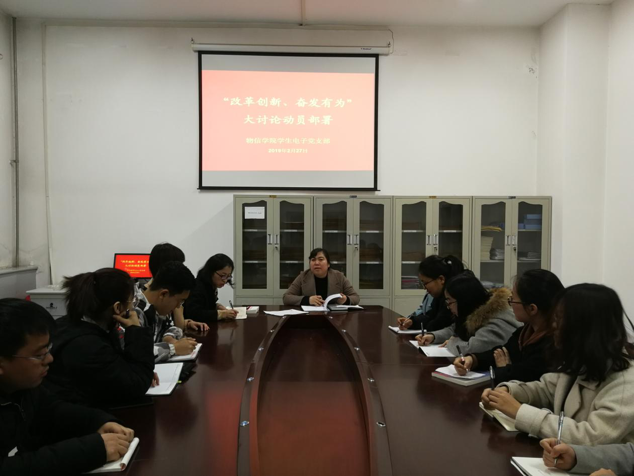 2019年2月27日晚6:20,公司员工电子党支部在四号楼一层会议室召开“改革创新、奋发有为”大讨论动员部署会议,支部全体党员参加了会议。会议由支部书记卫永霞主持。