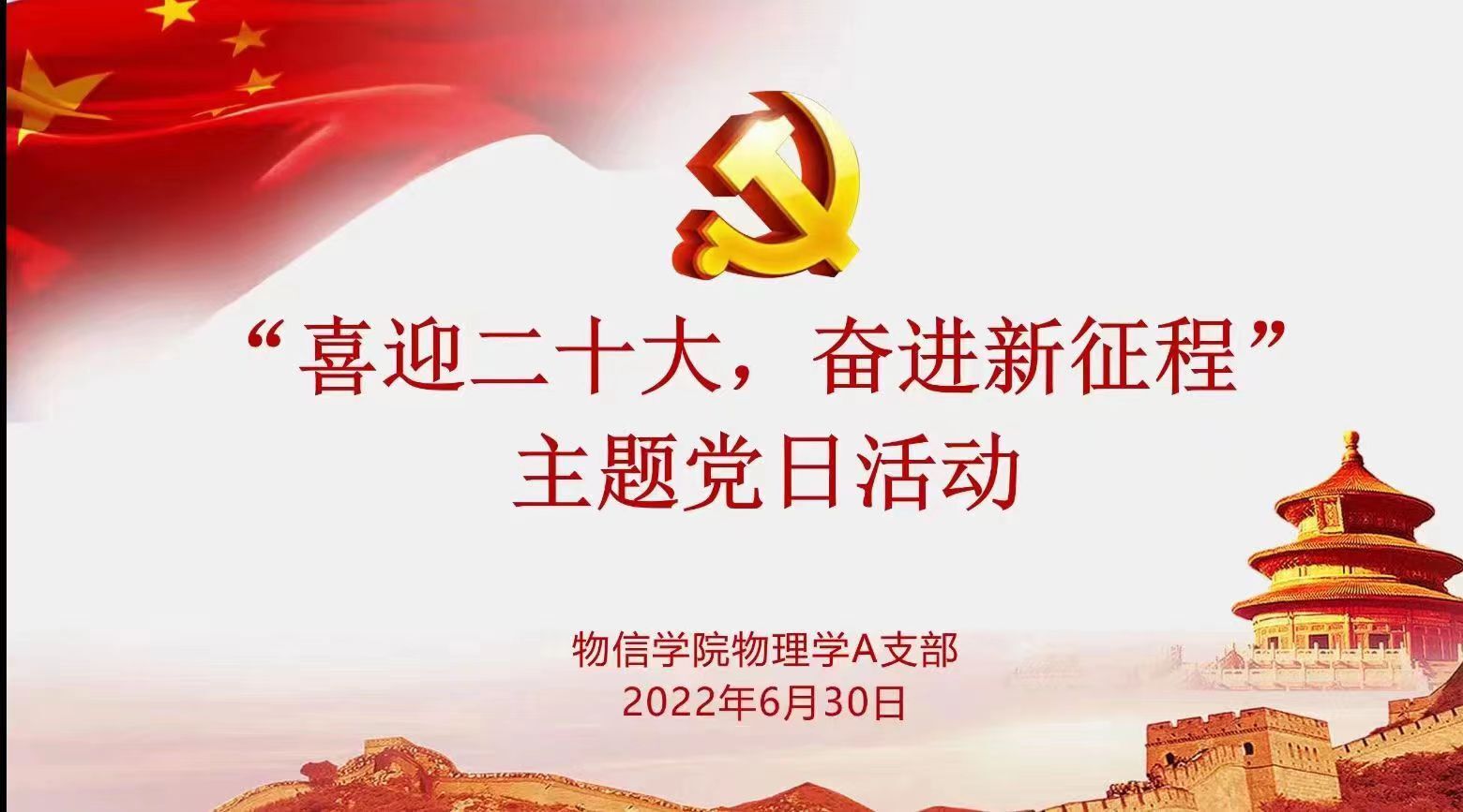 6月30日下午,公司物理学A支部在线上开展“喜迎二十大,奋进新征程”主题党日活动。支部全体党员参加了活动,活动由支部书记李俊生主持。