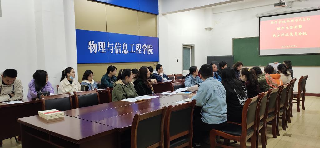 3月18日19:00,物理学A支部在四号楼二层多功能会议室举行了专题组织生活会暨民主评议党员大会。公司党委副书记王玮出席了会议。