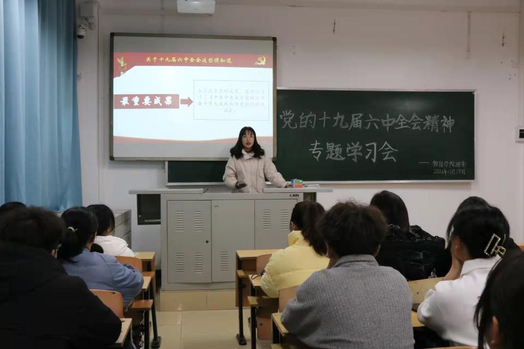为学习贯彻落实党的十九届六中全会精神,深入学习中国共产党百年奋斗历程,提高公司团学干部的思想水平、政治觉悟,11月19日晚,公司团委在南区5401教室召开了党的十九届六中全会精神专题学习会。院员工会主席团成员、各部门负责人及大一、大二、大三各班团支书参加会议。会议由院团委负责人马丽娜主持。