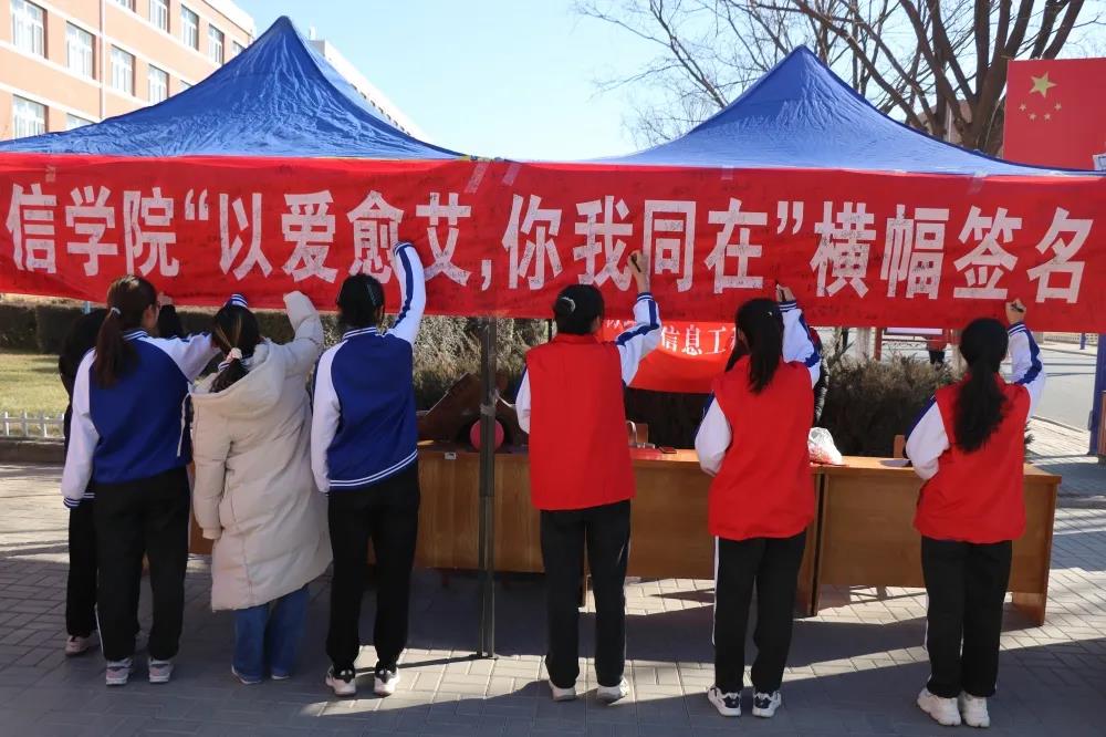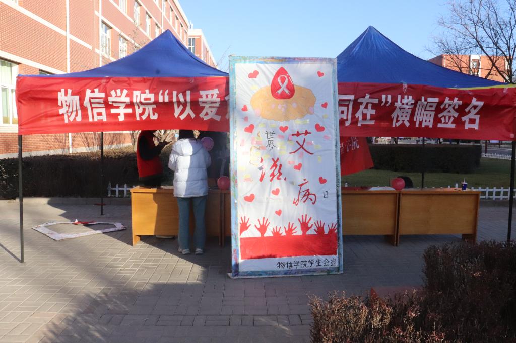 11月30日到12月1日,公司自律部和新媒体美工组在四号教学楼旁开展了“以爱愈艾,你我同在”活动。