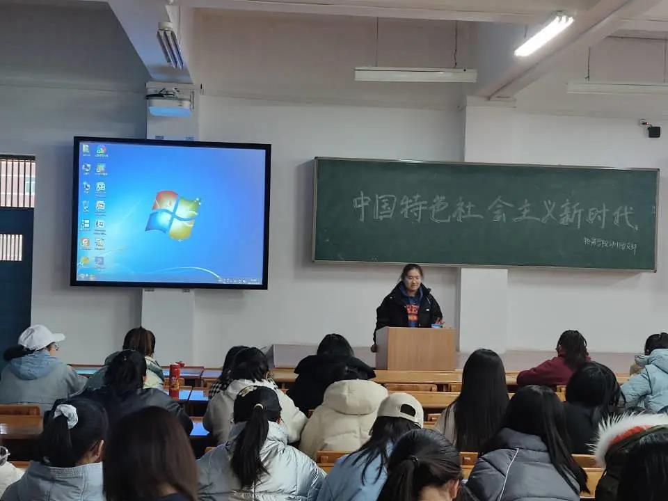 活动中,贾颖结合视频带领同学们回顾了中国特色社会主义进入新时代以来,以习近平同志为核心的党中央团结带领全党全军全国各族人民迎难而上的奋斗历程。通过学习,同学们对中国特色社会主义新时代有了更深层次的认识,增强了同学们对中国特色社会主义新时代的内涵、意义、发展理念的深刻认识。同学们纷纷表示,会把握好新时代的机遇,用先进的思想理论武装头脑,不忘初心、牢记使命,努力拼搏,为实现中华民族伟大复兴贡献青春智慧。(文/2101班 侯妮 摄/2101班 吴晨盈)
