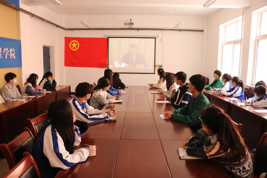 观看结束后,师生们深受鼓舞、深感振奋。大家纷纷表示,习近平总书记的重要讲话催人奋进,鼓舞人心。百年来,中国共产主义青年团始终高举共产主义、社会主义的旗帜,团结带领广大中国青年投身人民群众的壮阔实践,在民族复兴征程上发挥生力军和突击队的作用。作为高校教师要认真学习宣传贯彻习近平总书记重要讲话精神,立足本职工作,扎实勤勉干事,坚持立德树人根本任务,为培养担当民族复兴重任的时代新人作出新的更大的贡献。作为青年员工要坚定理想信念,练就过硬本领,心怀国之大者,向榜样学习,向英雄学习,用奋斗作为青春底色,在青春的赛道上跑出最好成绩。(文/李天博 摄/2101班 薛坤璐)