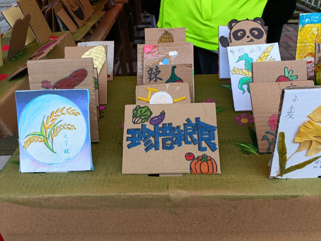 经过前期的宣传,此次活动共收回1000多份作品。活动中,同学们通过搜集身边的废旧纸片、快递纸盒,经过切割、裁剪并配以自己独具匠心绘制的农作物图案,制作出了一个又一个的栩栩如生的农作物立牌。随后选取优秀的农作物作立牌在公司思政文化街进行展览,一个又一个别具一格,独具匠心的农作物连成了一大片特色“农田”,路过的同学纷纷驻足观看,与 “农田”合影,并纷纷表示要加入到此项活动中,用实际行动践行节约粮食的理念。