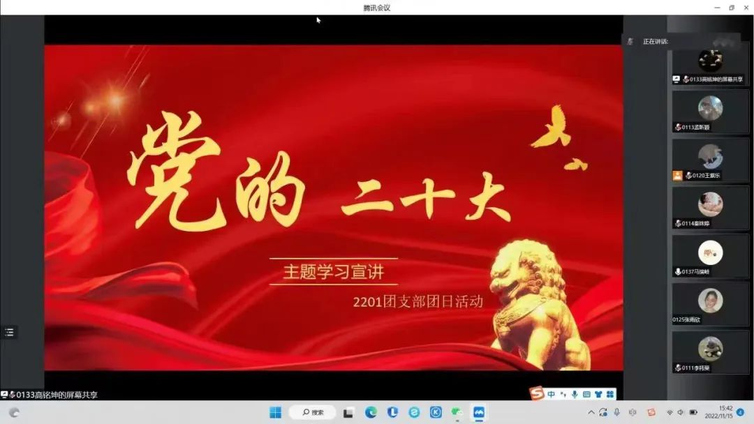 2201班团支书组织同学们观看学习了习近平总书记在党的二十届一中全会的讲话和中国网品牌栏目“中国访谈”关于党的二十大报告的深入解读视频。