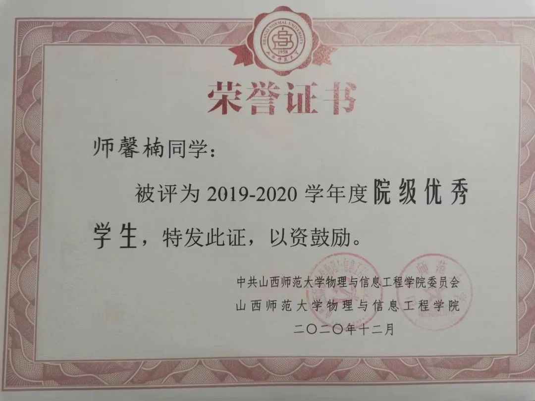 师馨楠,yl6809永利yl6809永利2019级物理学专业员工,保研至西北大学。