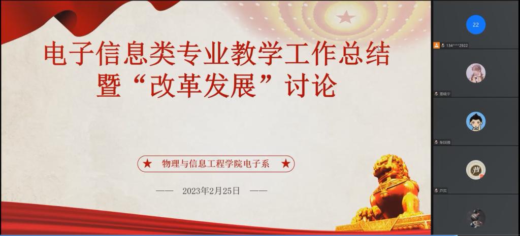 为了提高教学质量,2 月25日下午 3 点,公司于线上召开了电子信息类专业教学工作总结暨“改革发展”讨论会,电子信息类专业全体教师参加会议,电子系主任王大为主持了本次会议。