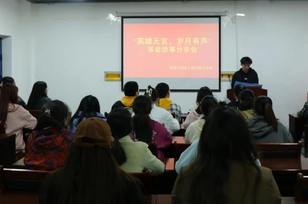 为了让同学们深刻领会革命先烈的英勇奉献精神,院员工会文体部于4月4日晚在南区实验楼S202举办“英雄无言,岁月有声”革命故事分享会。本次分享会由文体部徐弈鹏主持。