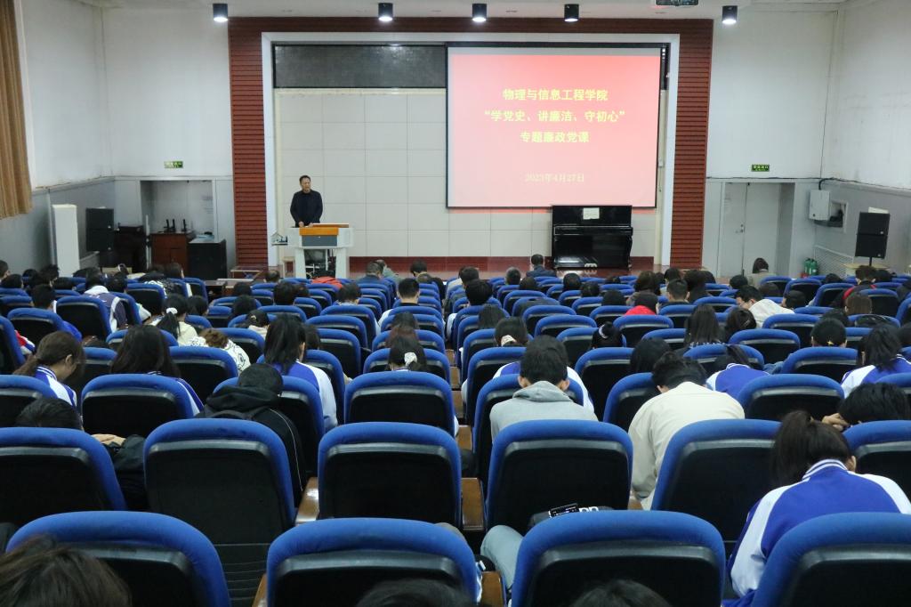 4月27日上午,公司于南区实验楼一层报告厅开展“学党史、讲廉洁、守初心”专题学习党课。公司教职工、部分班级参加了本次党课,由公司党委书记许国宝主讲。