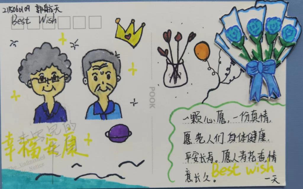 活动中,同学们在便利贴上写下对老人的祝福,表达对老人的美好祝愿,或用相机记录有趣的校园生活,让老人身临其境感受青春活力。此外,同学们还通过绘画、书法、信件、手抄报等表达对老人的关心,用心制作小礼物和手工艺品,将爱传递给老人,丰富老年人的精神生活,用实际行动为他们带去喜悦。活动结束后,收回的所有作品将会在后期下乡活动中传递给老人,以此丰富老年人的精神生活,用实际行动为他们带去喜悦。