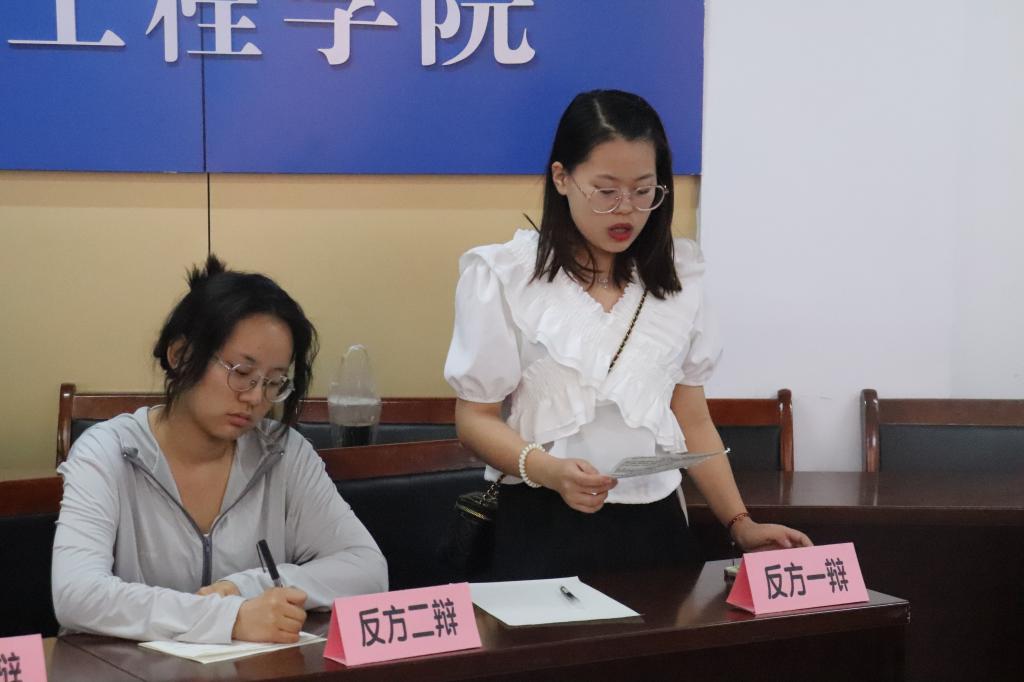 为了培养同学们的语言表达能力、思辨能力和团队配合能力,6月11日晚,院员工会学创部在实验楼s202会议室开展了“以诚为本,以信立人”辩论活动。评委由往届辩论队优秀辩手李佳琪、席蘅青和往届辩论队队长宋研担任。本场比赛由学创部包一彤主持。