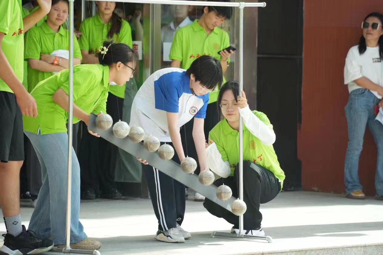 科普宣讲中,236“星火”科普宣讲实践队的成员们从日常生活现象出发,选取最为贴近日常生活的物理知识内容进行科普宣传。在实验过程中,邀请同学们亲自参与并共同完成蛇形摆实验、空气炮实验、水火箭实验、马德堡半球实验等众多互动性实验。在与同学们共同完成实验的过程中,不仅拉近了与同学们间的距离,而且用一种简单日常的方式让大家学懂了晦涩难懂的物理知识。