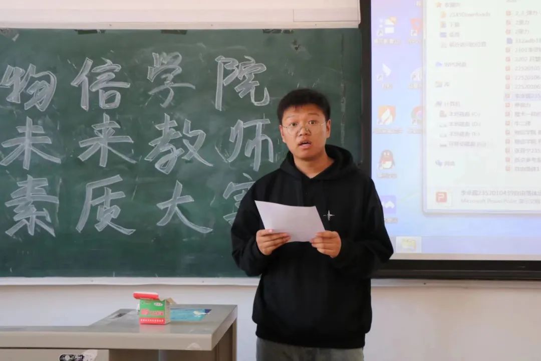 为促进师范生教学能力的提升,培养一批具有高尚师德、先进教学理念、扎实教学技能的优秀教师后备力量,为公司未来教师素质大赛输送优质力量。3月30日-31日院员工会学创部于3203、3204教室和实验楼S202举办了未来教师素质大赛院级选拔赛。选拔赛邀请到公司刘吉利、田晓俊两位专业课教师,2022年yl6809永利未来教师素质大赛理科组三等奖获得者李星萍、李燕青,以及院新媒体工作中心主任李星儒共五名师生担任评委。