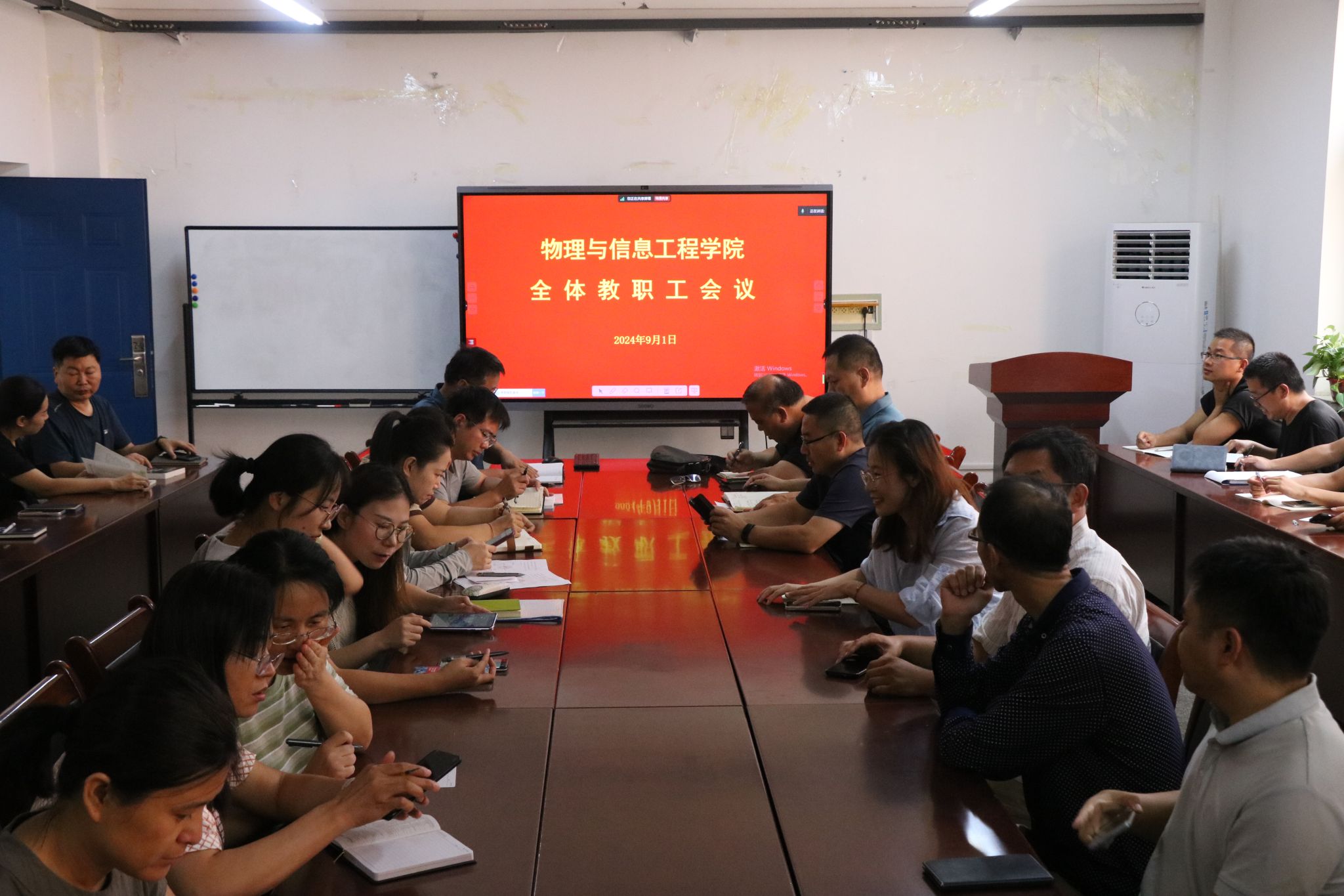 为确保新学期工作顺利开展,提升团队凝聚力,推动公司高质量发展。9月1日下午,公司在实验楼S202会议室召开新学期全体教职工大会。公司党委书记许国宝、副经理韩建宁、公司党委副书记颜志刚、副经理李俊生、副经理刘永恺(挂职)及全体教职工参会。会议由韩建宁主持。
