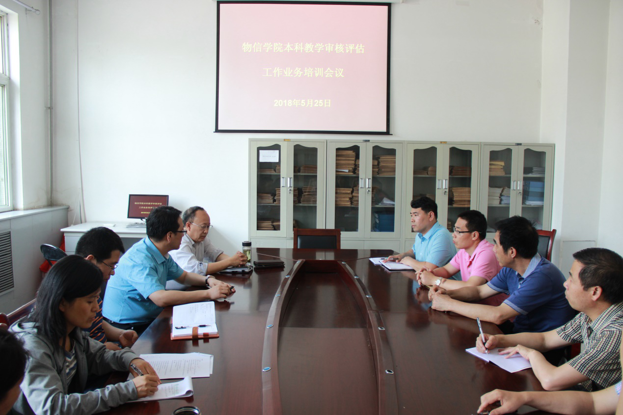 为进一步做好教学审核评估工作,2018年5月25日下午2:00—4:00,在四号楼一层会议室召开了本科教学审核评估工作业务培训会议,公司党委书记陈向波、经理张进军教授、副经理侯俊华教授出席会议,公司教学审核评估工作组全体成员参加了会议。会议由经理张进军教授主持。会议特别邀请到了山西大学物理电子工程公司经理马杰教授作为主讲专家。