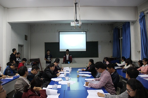 陈向波副书记首先就先进班集体的评选办法进行了介绍。接着,大二大三各班根据抽签顺序进行了班级汇报,汇报采用PPT形式进行,每班限时8分钟。各班汇报的内容大致包括班级制度建设,学风建设,思想建设,文化活动,反思和展望未来等几个部分。每个班级都用富有特色的文字与课件介绍了本班在过去一年内的开展的主要活动和取得的成绩。