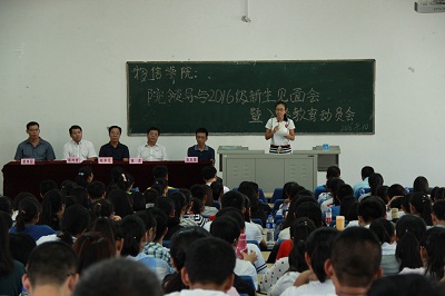为引导新生尽快了解并适应老员工活,树立积极的思想观念和人生目标。9月10日下午3点,公司于05203教室召开了院领导与2016级新生见面会暨入学教育动员会。院领导张争宽、杨虎、陈向波、张东海、苗向阳出席会议,物理系主任侯俊华、电子系主任李竹、院团委书记杨亚东、院教学办公室主任卫永霞、专职辅导员陈秀文、行政办公室王慧芳老师、大一各班辅导员及2016级全体新生参加了会议。会议由公司党委副书记陈向波主持。