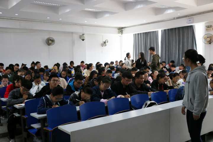 知识测试以考试形式展开,共设置20个考场,除15级部分员工在外实习外,剩余23个班级的在校员工参加了考试。考试题型包括选择题、判断题、填空题、解答题、论述题;内容涉及公司的校训、精神,本科教学审核评估的时间、目的与意义,员工应该怎样积极参加公司的迎评工作等。考试期间,整个考场井然有序,考风严肃,同学们严格遵守考场纪律,认真作答。院团委副书记岳文慧老师和员工会主席团成员对各个考场进行了不定时巡视。