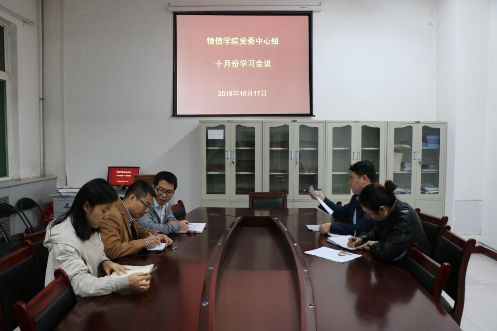 2018年10月17日晚9:00,公司在四号楼一层会议室召开公司党委中心组十月份学习会议。公司党委中心组全体成员参加了会议。会议由公司党委书记陈向波主持。