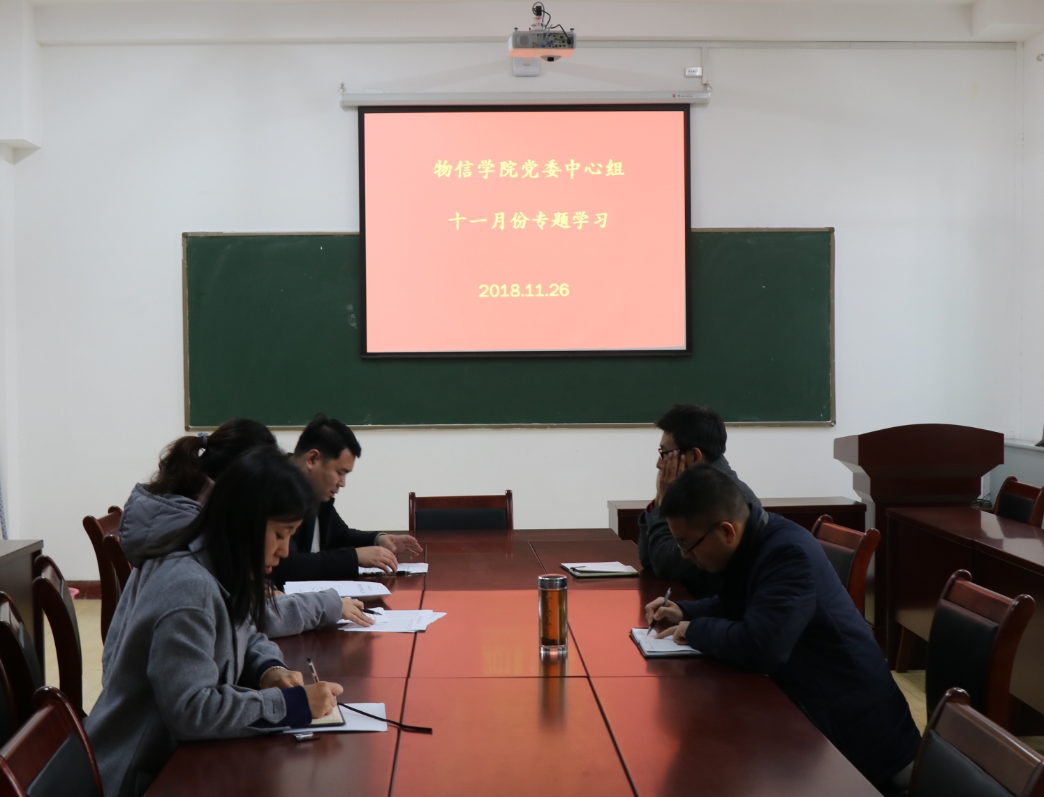 2018年11月26日下午4:15,公司党委中心组在四号楼二层多功能会议室召开十一月份学习会议,公司党委中心组全体成员参加了会议,会议由公司党委书记陈向波主持。