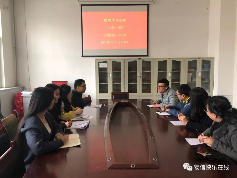 为全面规范落实“三会一课”制度,加强党员同志们对“三会一课”制度的认识,2018年11月28日,公司物理学B支部在四号楼一层会议室开展“三会一课”主题党日活动。支部全体党员参加了此次活动。活动由支部书记徐小虎主持。