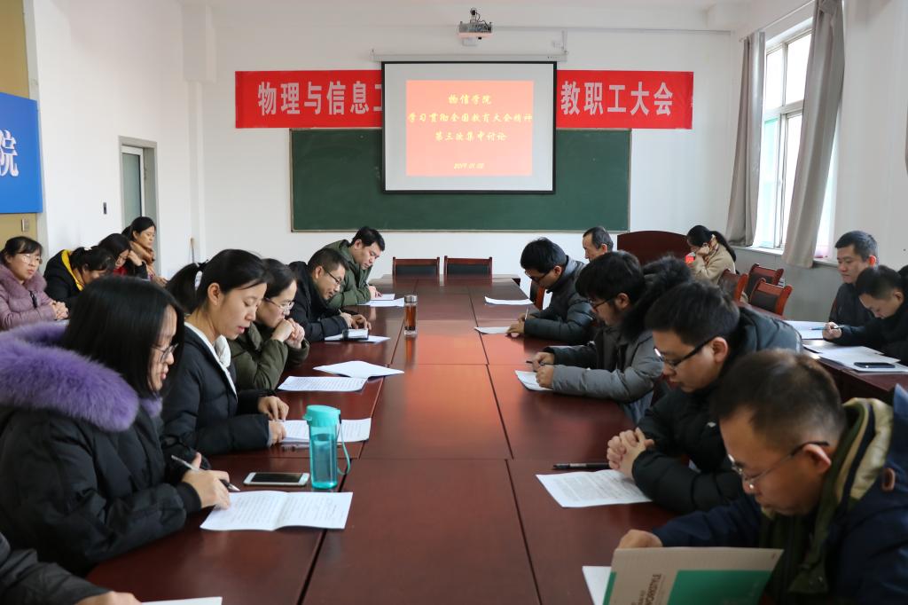 首先各学习小组代表就学习贯彻全国教育大会精神第二次集中讨论和第三次集中讨论作了汇报。院团委副书记岳文慧说,通过第二次的集中学习,小组成员对全国教育大会精神的理解更加深刻,认识更加全面和细致。辅导员肩负着将思想教育贯穿至教育全过程的艰巨任务,是员工思想的引领者,成长的引路人,辅导员工作涉及员工思想政治教育、日常管理、就业指导、心理健康、党团建设等各个方面更要不断关照员工、服务员工、把握员工成长规律,不断提高员工的思想水平、政治觉悟、道德品质和文化素养。苏晓强老师说到:老师要将对德行的重视放到第一位,认识到师德的重要性;要结合员工的自身特点改变僵化的教育模式,更加人性化的公司产品,充分发掘员工的潜力,使得员工在成才的过程中成为一个完整而健康的人,要重视人格的培养。赵承祥老师说到:全国教育大会充分展示了党和国家对我国教育事业的重视,习近平总书记的讲话更是对教育工作者的重视,作为一名大学教师也深刻地体会到了所肩负的使命,在以后的教学工作中要仔细做研究、呕心做教育,不断地学习和交流,努力的提高自身修养和教学科研能力,努力地为我国的教育事业和民族的复兴贡献自己的力量。