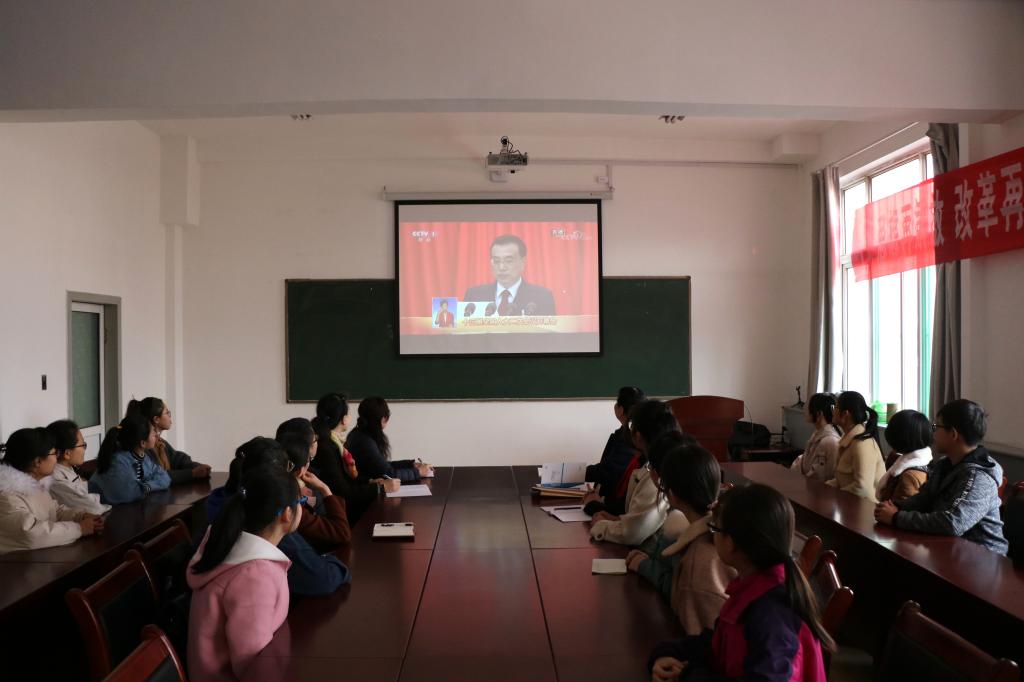 公司组织师生集中观看十三届全国人大二次会议开幕会盛况