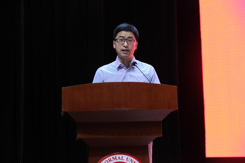 教师代表程留永老师作了满怀深情的发言。他用“祝贺”“不舍”和“期望”三个词语与2019届毕业生分享了他的感受和送上了他的祝福。他在发言中说,祝贺同学们掌握了扎实的知识技能,为将来的就业、深造打下了基础;祝贺同学们塑造了严谨的科学精神,为以后的求真务实扎下了篱笆;祝贺同学们变成了更优秀的自己,为咱们的小家、国家担当起责任。不舍四年的师生情,同窗谊。期望大家在今后的成长道路上,能够继续发扬母校“团结、创造、求实、奋进”的校风校训,在星辰大海中披荆斩棘,一往无前。