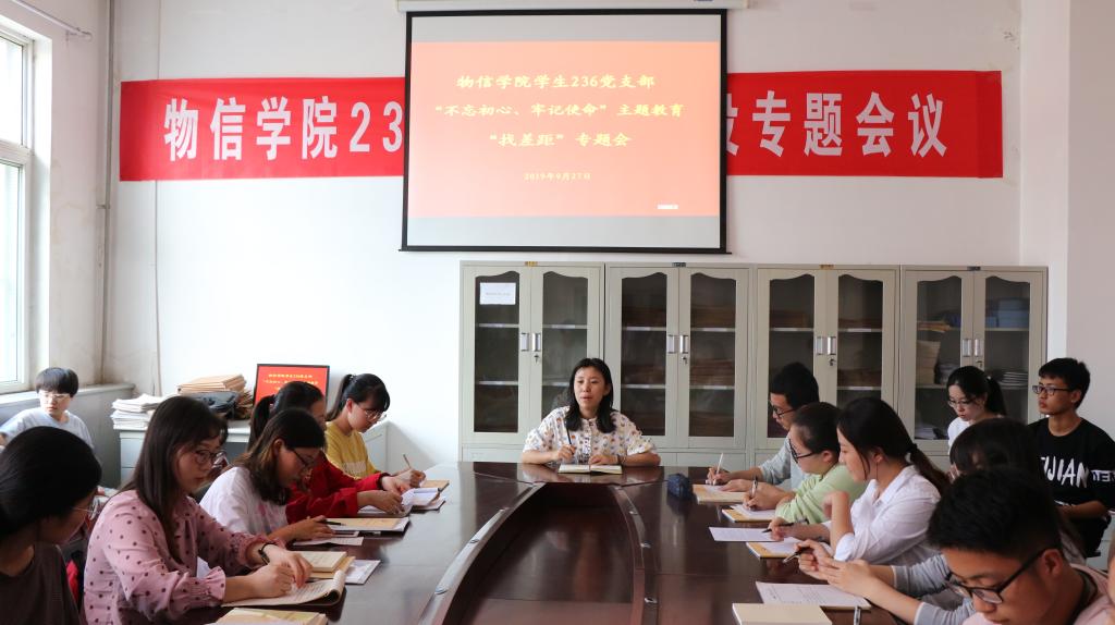 岳文慧首先强调了召开本次专题会的目的和意义,进一步强调了开展主题教育以及找差距对思想建党、理论强党的重要性。随后,支部党员对照《中国共产党廉洁自律准则》《关于新形势下党内政治生活的若干准则》《中国共产党纪律处分条例》并结合自身工作实际,找出差距,逐条列出问题。赵磊同志说:“在日常的学习工作生活中,我和优秀还是存在很大差距的。最典型的体现在缺乏创新精神,举办主题教育活动时,形式单一,缺乏新颖趣味性,没有很好的调动同学们的主动性积极性。今后我会深刻反思,与其他支部社团组织多多交流,不断探索新的实践方式,提高业务能力。”李畅同志说:“我认为我与群众联系较为紧密,但是践行意识有所弱化,思想与行动不相匹配,在以后的生活工作中,我希望可以克服‘学归学,说归说,做归做’的现象,真正将践行践诺落到实处!”