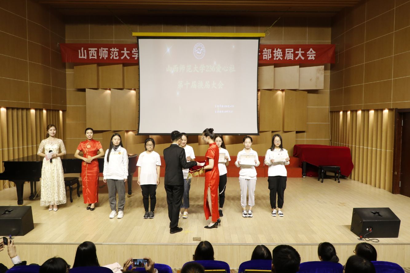 2019年9月27日晚7:30,236爱心社在10号楼音乐厅举办了第十届员工干部换届大会。第九届社团负责人、校社联和各兄弟社团代表以及两届各部门部长、大一部分同学参加了此次大会。大会由236爱心社文艺部部长师宝岚和部员卢豪杰主持。
