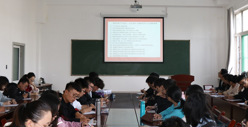 10月17日中午,公司 “不忘初心、牢记使命” 主题教育员工工调研交流会在四号楼二层会议室召开。大一至大三年级的五十余名员工代表参加了调研交流,公司党委副书记、学工组长王玮参加了会议,会议由专职辅导员马丽娜主持。
