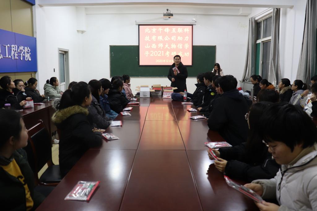 在2020年研究生考试到来之际,为助力公司考研学子,12月16日下午,千锋教育集团在四号楼二层会议室为公司考研学子发放了150套充满爱心的考研加油包。