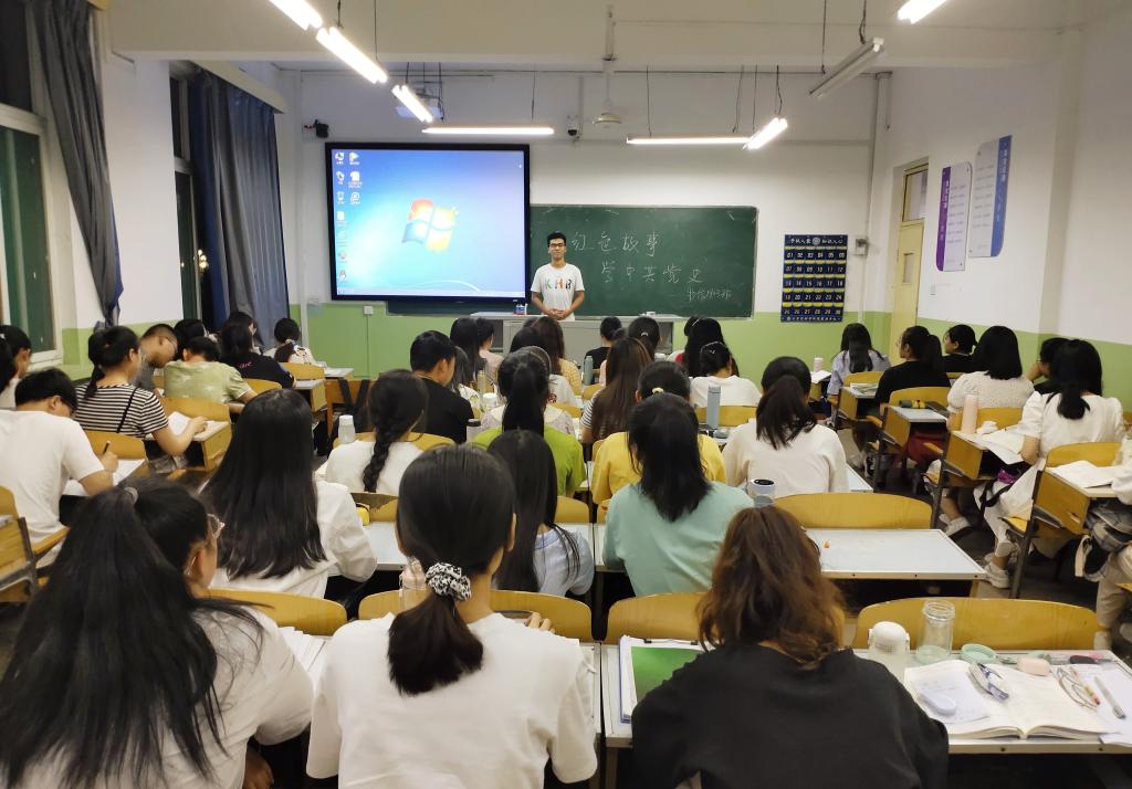 活动中,吴培清带领同学们学习了《中国共产党简史》第三章中“巩固抗日根据地和推进抗日民主运动”的原文内容,他指出,在艰苦的敌后抗战中,中国共产党因地制宜、自力更生,顽强不屈地与各方敌对势力进行艰苦的斗争,涌现出“狼牙山五壮士”等无数可歌可泣的英雄事迹。同时他鼓励同学们要努力学习革命英雄团结一致、不畏强暴、反抗侵略的精神气概。同学们也纷纷表示,会学好百年党史,传承红色基因,跟随党的脚步,积极投身于全面建设社会主义现代化国家新征程中。(文/1903班 李慧英 摄/1903班 郝璐璐)
