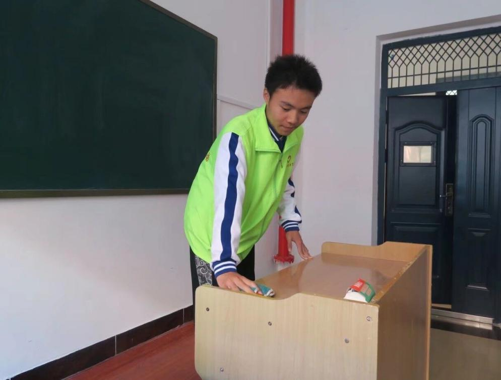 活动中,志愿者们仔细擦拭讲桌上的粉笔灰尘,认真清理课桌内垃圾、清扫地面,大家合理分工、相互配合,很快就完成了清扫任务,把一个干净整洁的教室呈现在大家面前。“希望明天上课时,老师和同学们来到教室会感觉到舒适和开心”,一个志愿者朴素的话语代表了所有参与活动志愿者的心声。