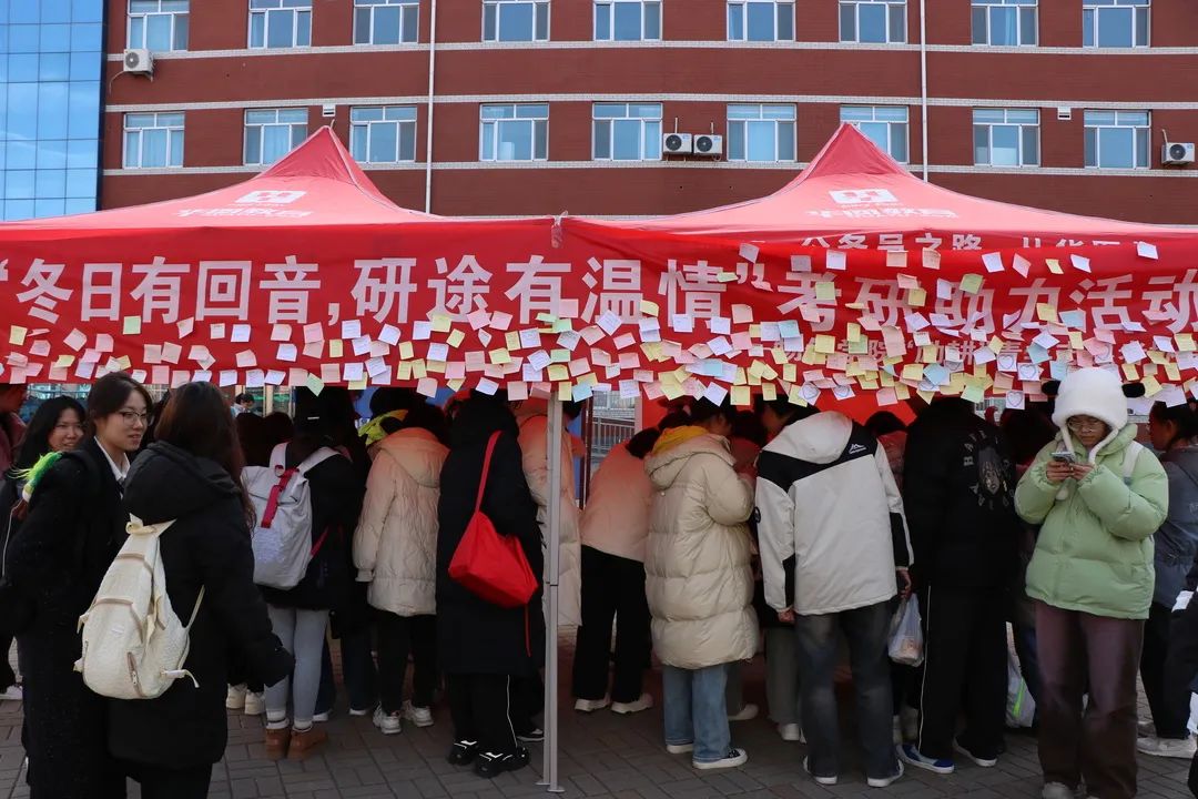 为增强公司考研学子的备考信心,提高同学们的考研热情,公司“励耕”青协于11月28日在南区六号教学楼前开展了“冬日有回音,研途有温情”为主题的助力考研活动。