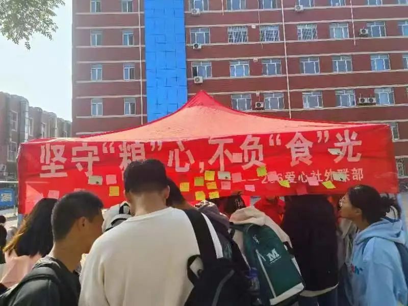 10月16日是世界粮食日,10月16日所在周是我国粮食安全宣传周,为更好地宣传推广世界粮食日,236爱心社于10月14日至16日在南区六号教学楼前举办了“坚守“粮”心,不负“食””光主题宣传活动,并在线上开展为期15天的“光盘行动你我他”打卡活动。