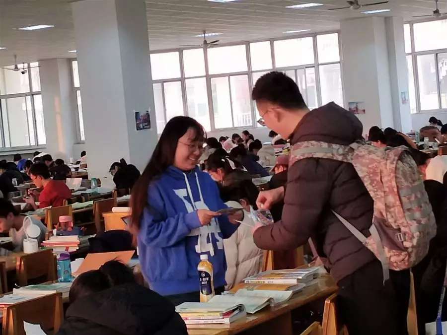 活动前期,支部成员将祝福的话语写在贺卡上。“博观而约取,厚积而薄发。考研必胜!”“千淘万漉虽辛苦,吹净黄沙始到金。全力以赴,你会很酷。”“愿你以渺小启程,以伟大结束。加油,祝考研成功!”等暖心的话语,是支部成员对考研学子真挚的祝福。随后,支部成员前往自习室,将暖心的贺卡和甜甜的奶糖送给各公司正在为考研而努力奋斗的学长学姐们,为他们送去冬日里的温暖和祝福。这份小小的礼物让备战考研的学长学姐在倍受感动的同时获得了信心与力量。相信这份温暖的力量可以陪伴他们度过最后的冲刺时光,以饱满的热情去迎接考试。