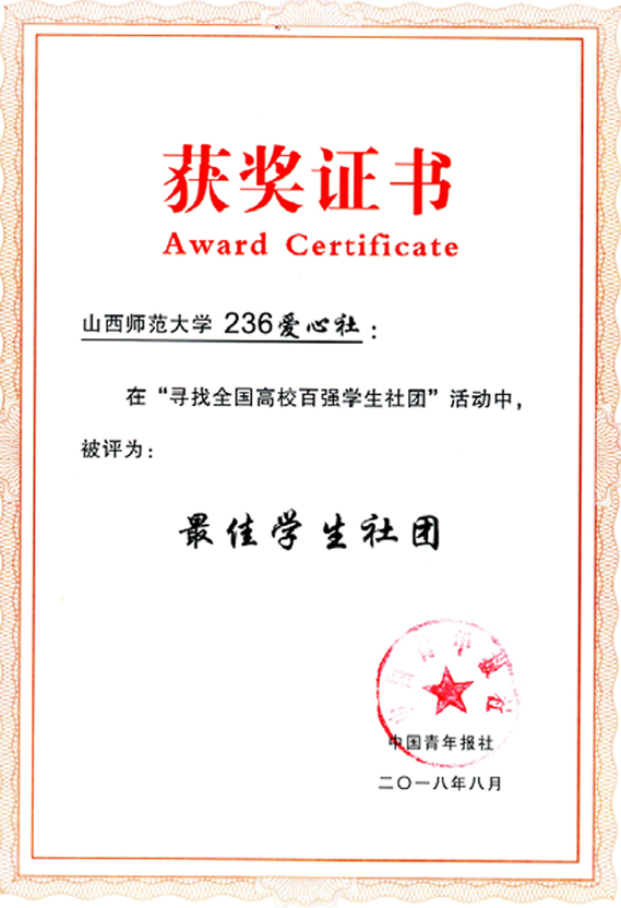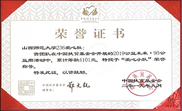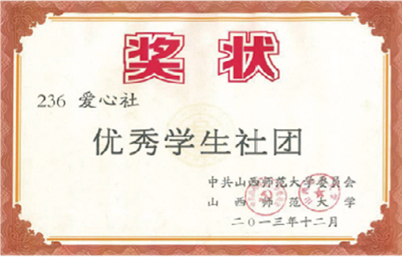十三年来,236爱心社继承和发展了“坚守信仰、关注公益、传播爱心、倾情奉献、矢志成才”的236精神,带动全校18个公司的数万名师生参与到公益活动中。现已形成“236爱心基金”“一张纸一份爱”“情系红丝带”“爱心义演”“梦想助学金”“梦想书屋”“烛光行动”“公益论坛”等13特色项目,建有4个校外实践基地,7座“梦想书屋”,直接长期帮扶11所中小学,发放“梦想助学金”及各类资助20多万元,受助人群达1万余人,在全省乃至全国都产生了很大的影响,赢得了广泛的社会赞誉。爱心社曾获得“山西青年五四奖状” “山西省五四红旗团支部”等荣誉称号, 14次受到公司党委和校团委的表彰,并成功入选了全国高校十大“最佳员工社团”、全国高校“百强社团”、全国校园公益行动“百强社团”、全国中小学环教行动暑期社会实践“优秀暑期实践队”;其爱心事迹还得到《人民日报》《中国教育报》《中国青年报》、中央电视台、《山西日报》《山西青年报》、山西卫视等各大媒体的多次长篇深度报道,累计达240余次。特别是《人民日报》近3000字、《中国教育报》《中国青年报》3次报道、中央电视台15分钟专题片播报、《山西日报》5次长篇深度报道,使236爱心社事迹得到了更广泛和更高层次的传播。2019年11月7日,yl6809永利236爱心社成功入驻百度词条。十三年来,236人在爱的道路上,一直不忘初心,牢记使命,风雨兼程,砥砺奋进!