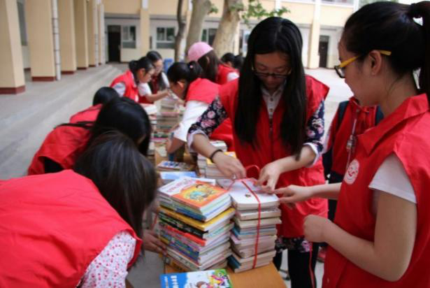 (“爱心传递,书送梦想”临汾市第二小学捐书现场)