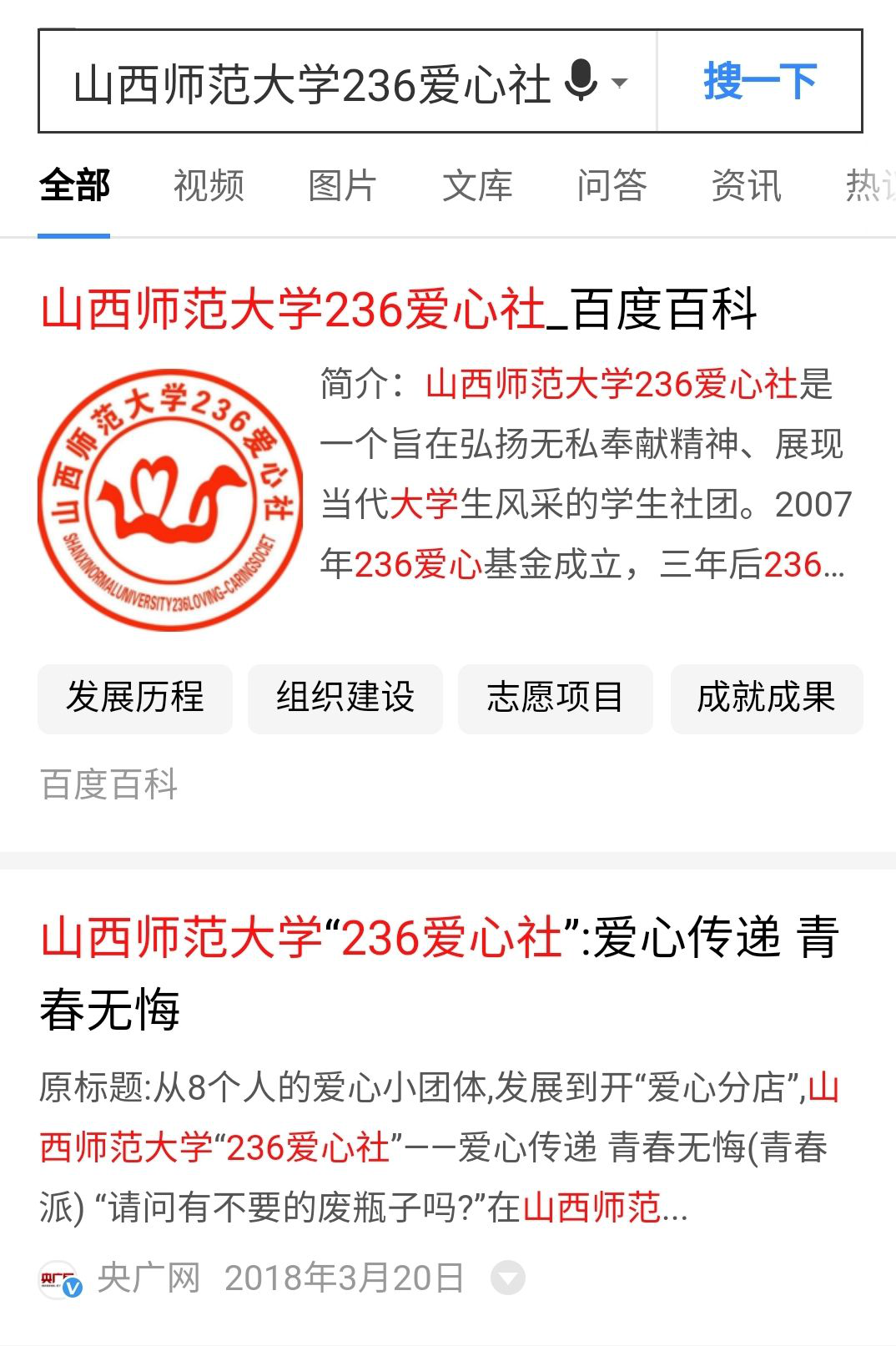 为了进一步弘扬236爱心社“坚守信仰,关注公益,传播爱心,倾情奉献,矢志成才”的精神,提高236爱心社品牌知名度,让更多的人投身到公益事业,志愿服务中来。在236人的共同努力下,yl6809永利236爱心社百度百科词条正式上线啦!