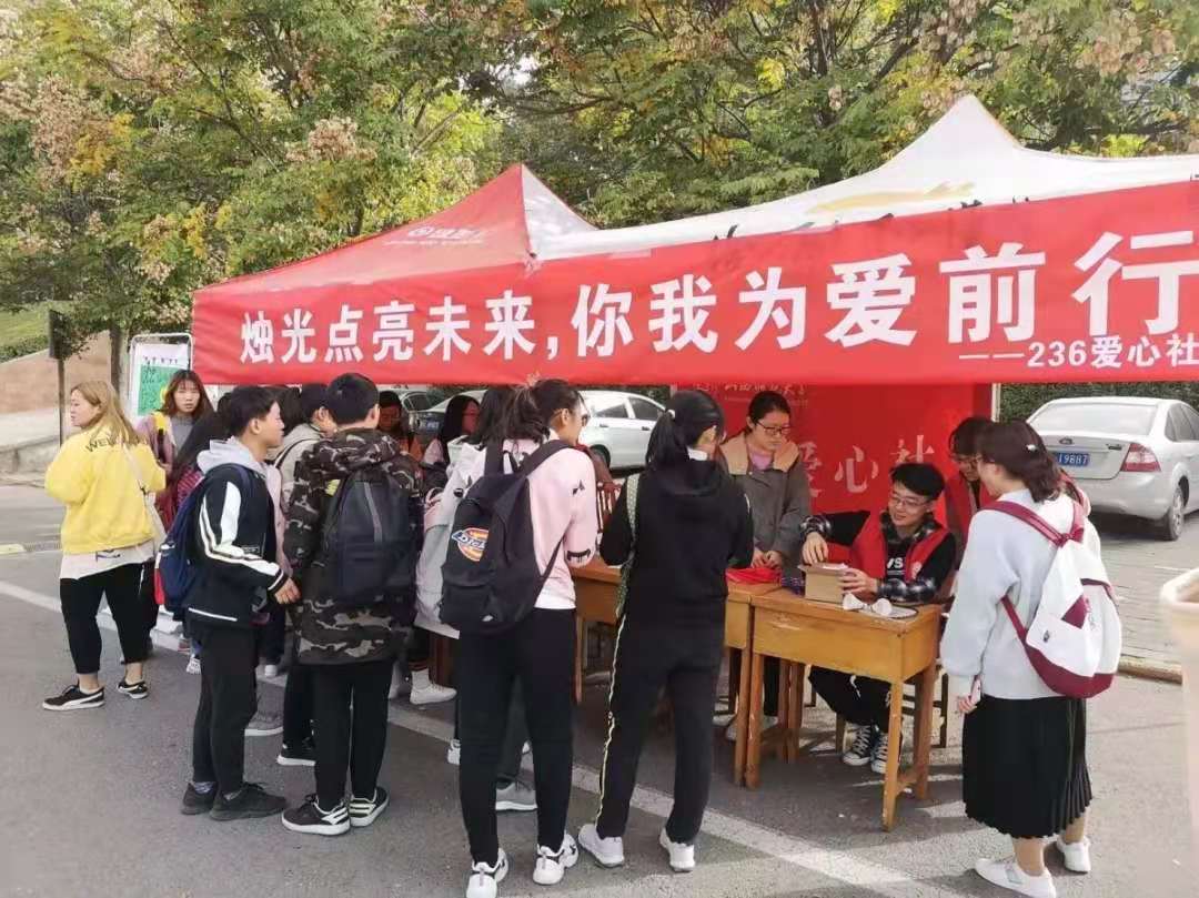 10月28日,236爱心社在校医院门口举办了为期五天的“烛光行动,你我同行”支教体验抽奖活动。同学们通过爱心寄语”写下大家对孩子们的祝福……独具特色的活动体验方式吸引了众多员工驻足参与。