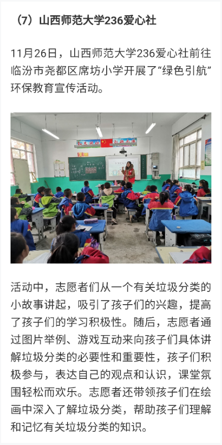 在此次活动中,236爱心社围绕垃圾分类展开了环境教育。志愿者们在公司开展形式丰富的环境教育宣传活动,让同学们明白了垃圾分类的重要性,也让同学们知道了更多有关垃圾分类的知识。