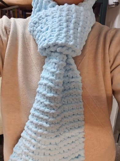这次我有幸参加了“为爱穿针,以织传情”的活动,对于这次的经历,我感触颇深。我在之前从未接触过织围巾,而且听说是给山区孩子织围巾,所以便想要去尝试尝试。一共参加了两次培训,学姐们都非常的热情,手把手教我们如何去起针,如何织第二排,如何收尾,即使我做错了,学姐也会温柔耐心的教我。在不断的练习后,我终于学会了,很开心。然后便与我的另外两个舍友一起织围巾给山区的孩子。当一条蓝色的围巾出现在我面前时,是满满的成就感。