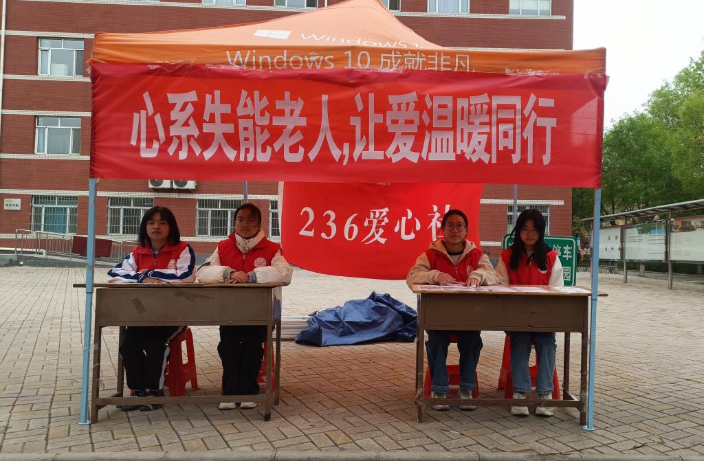 为提高同学们尊老敬老意识、参与公益事业的热情和积极性,4月28日,236爱心社在公司南区6号教学楼前举办“心系失能老人,让爱温暖同行”活动。